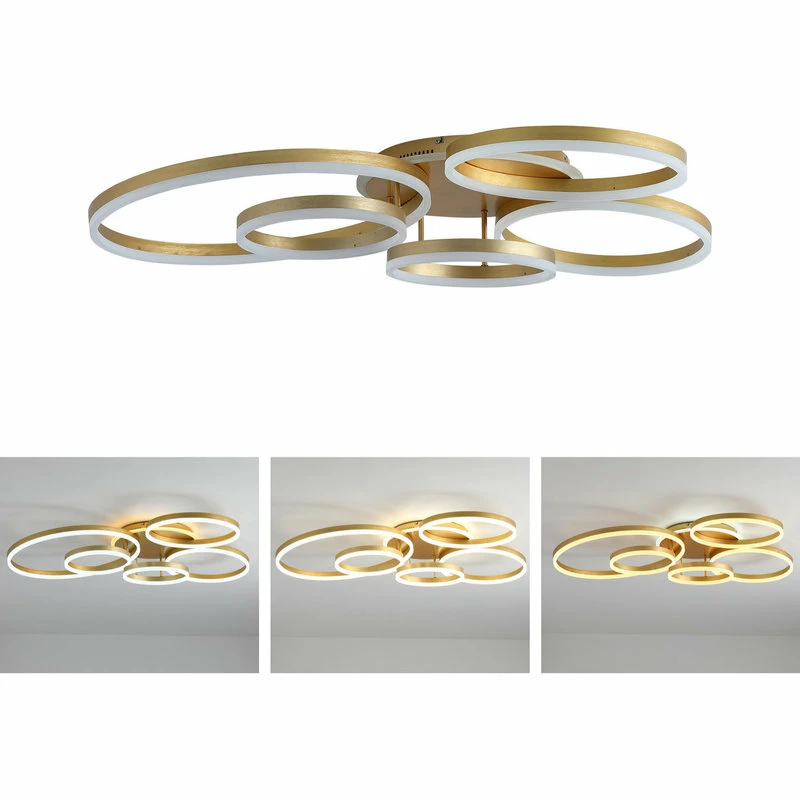 This is a modern flush mount ceiling light that features five circular rings of light for function and fashion. This ceiling light has three color light source, you can freely change the color temperature by the regular switch, making the light looks glamorous and classy. When you turn on the light at night, you can see the gorgeous lighting effect on the wall, different color has a different ambiance.