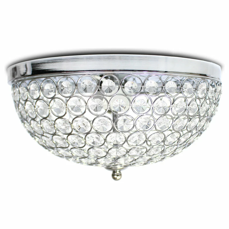 Bejewel your home with this gorgeous two (2) light elipse crystal ceiling flush mount. It features a beautiful metal and crystal tiled shade. This fabulously chic design will be the envy of all your friends. We believe that lighting is like jewelry for your home. Our products will help to enhance your room with elegance and sophistication. Medium Base Type B Bulbs (not included). Bulb type – Incandescent. 2 Lights X 60Wattage. Flawless Chrome Finish. Perfect for living room, dining room, bedroom, office, or foyer. 13″ Diameter. Center screw/Finial Shade security. Material Breakdown: Iron 45%, crystal 45%, else 10%. Crystal primary material. Chrome finish. Modern style.
