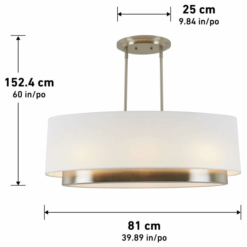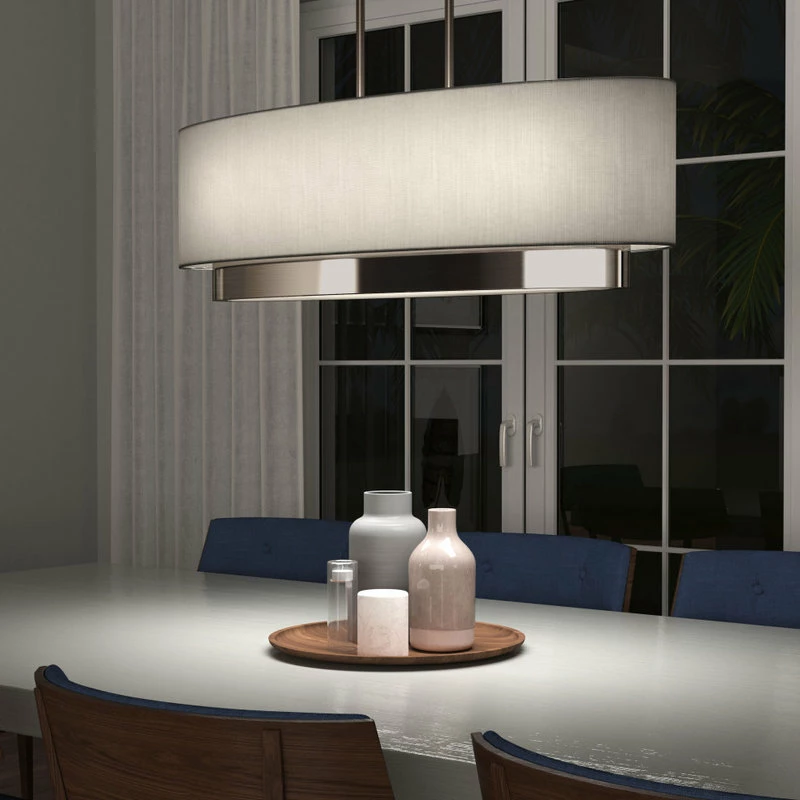 - With its neutral tones and sleek design, Andalee is a chandelier that beautifully accommodates any setting. Oval-shaped with a brushed nickel finish, this lighting fixture makes a statement without taking up much space. Equal parts practical and pretty, it enhances any environment! In addition to offering great versatility, Andalee easily integrates into your space thanks to its adjustable cables and variable brightness. Grace your household with its signature glow it shines just the way you want.