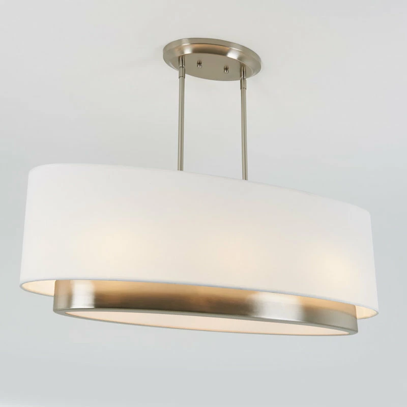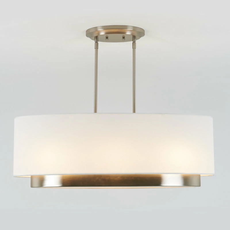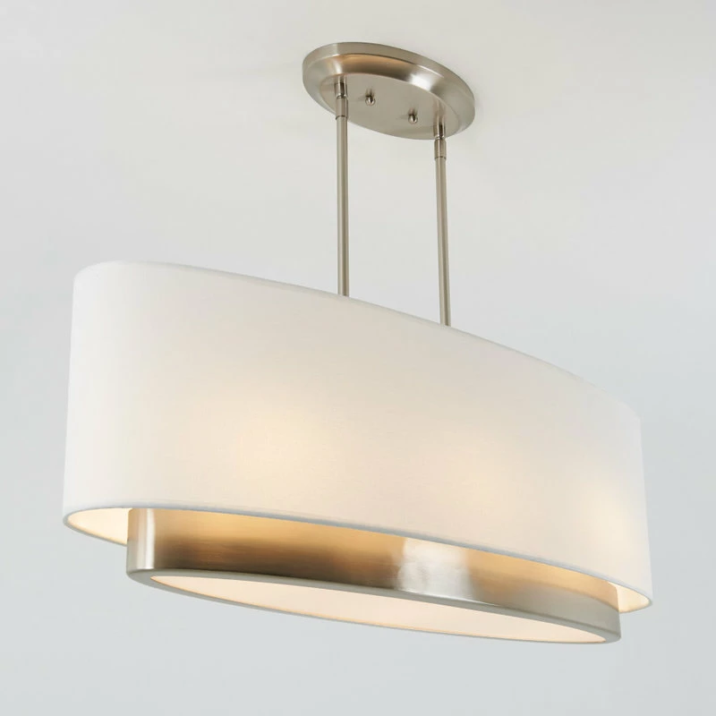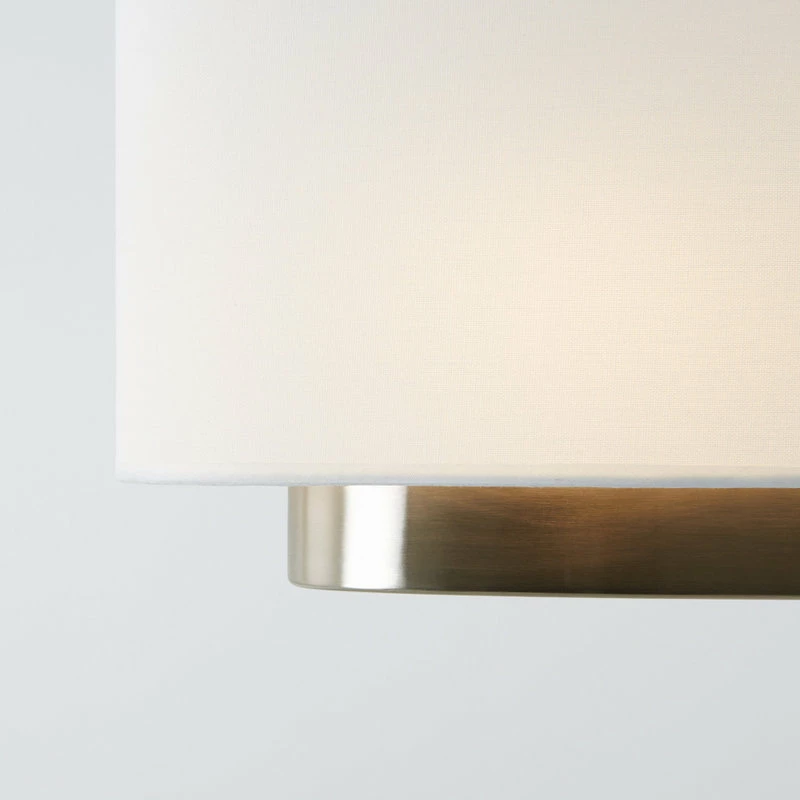 - Fabric shade with brushed nickel accent