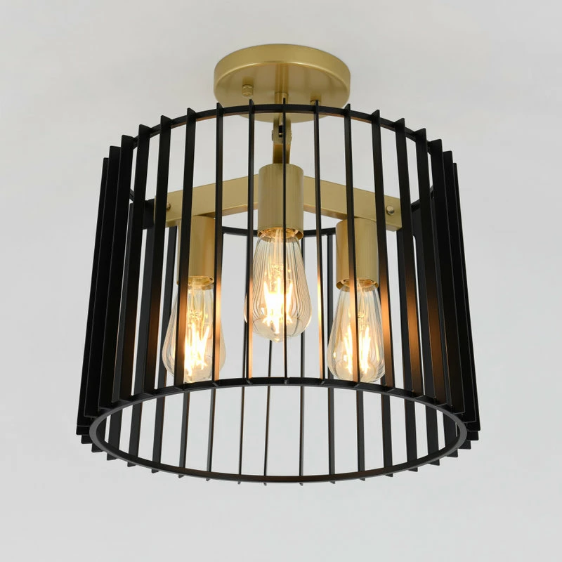 Gatsby is a modern ceiling light with stainless steel bars, which surround the fixture’s 3 incandescent bulbs. This Mid-Century flush mount light shines beautifully on any ceilingβincluding sloped ones. And not to mention, its gold accents add a little refinement to the room.
