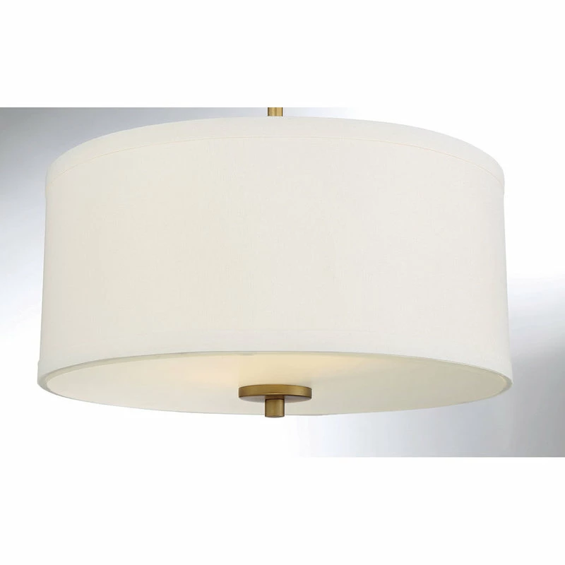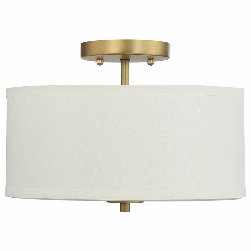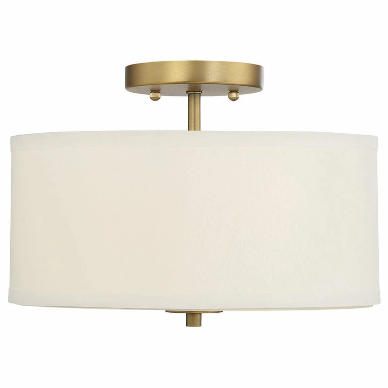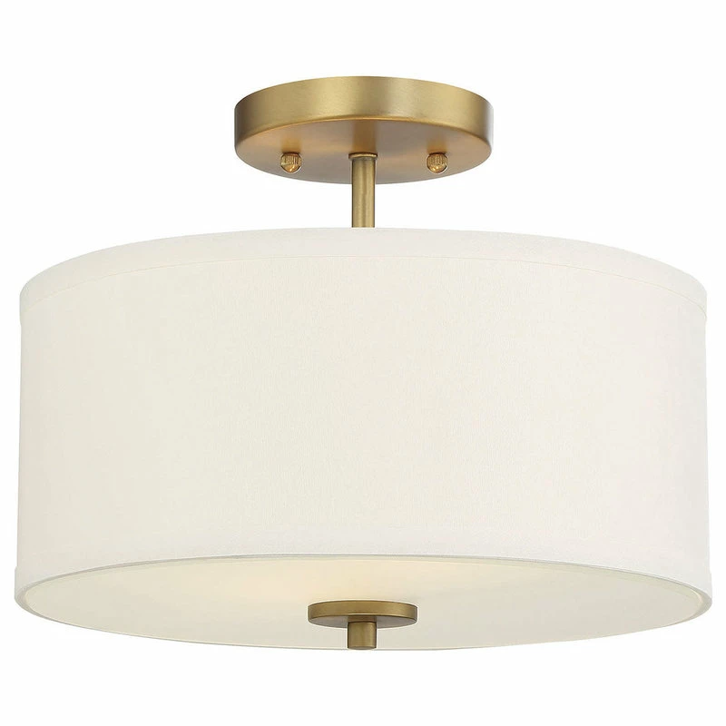 This versatile 2-light ceiling semi-flush mount has a crisp white fabric shade and Natural Brass finish. Perfect for brightening up any room! Number of Bulbs 2. Max Wattage 100. No Bulbs Included. No UL Availability.