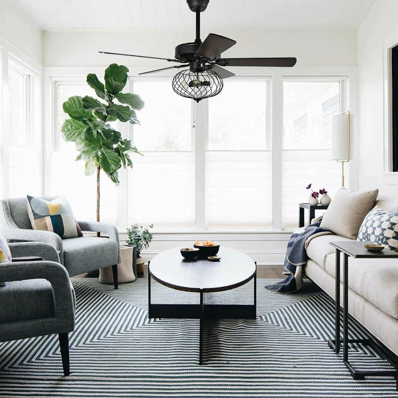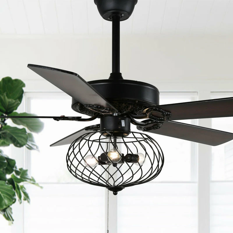 Bring antique and Contemporary look to your decor with this 52-inch modern style crystal ceiling fan. This chrome mariella crystal drum shade ceiling fan features a chrome rounded housing, with crystal-embedded grid vented shade around the 3 lights under curved arms, and crystal pendants suspended from inside the shade at the bottom. The room will be bathed in excellent and glamorous light refraction when it’s on. The adoption of 5 wood blades will sufficiently move plenty of air for active circulation. The reversible switch under the arms of blades promises the use of fan all year around. This fully functional and decorative ceiling fan will be perfect for adding elegant details to your home.