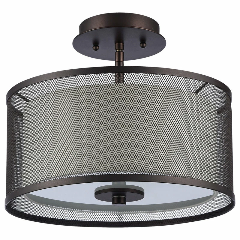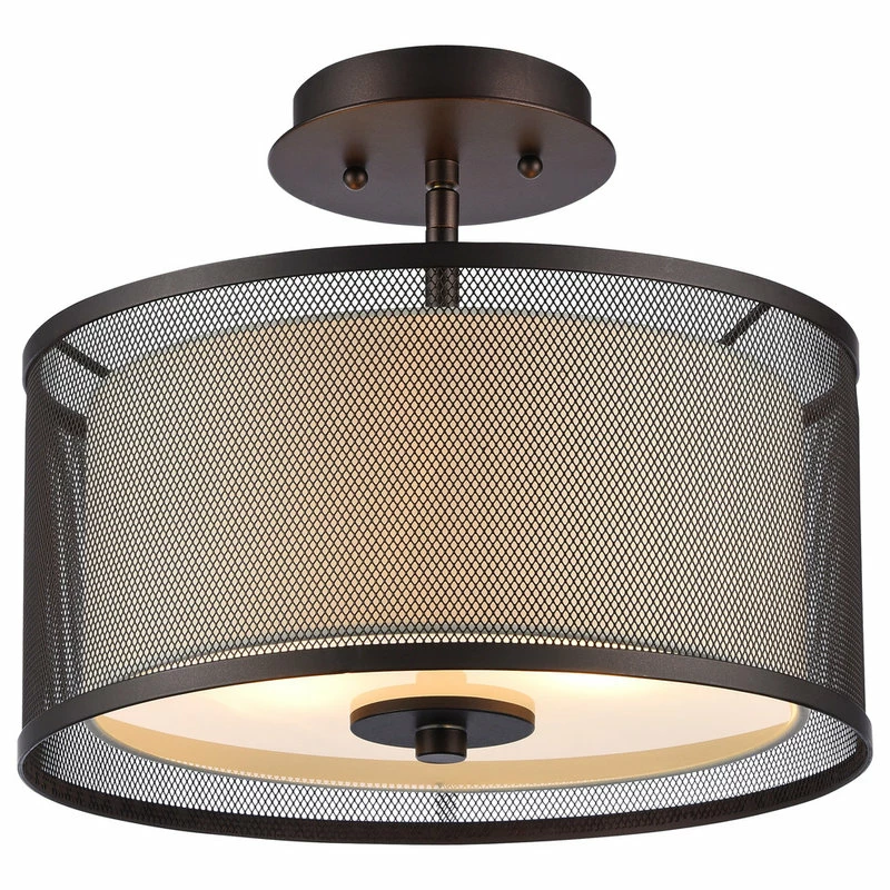Drawing your eyes upward, the Audrey Transitional 2-Light Semi-Flush Mount Fixture offers balance and refined style to your transitional decor. This flush mount fixture features a frosted glass diffuser and is surrounded by a mesh frame to give off a warm, cozy light when illuminated. Elevate your room’s ambiance with the Audrey Transitional 2-Light Semi-Flush Mount Fixture.