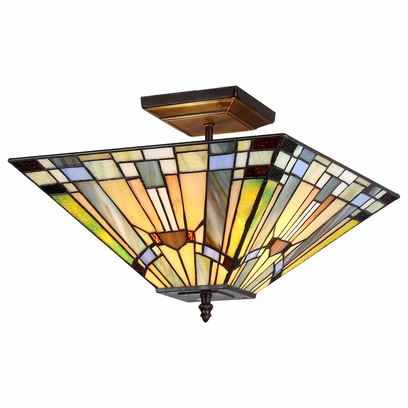 Crafted by hand, the Kinsey Mission Semi-Flush Ceiling Light features a mosaic of 232 pieces of stained glass in soft pastel tones. As the shade is made by hand, no two are exactly alike, ensuring that yours is a complete original. Stained glass is protected with mineral oil, excess oil can be removed with a soft dry cloth. CHLOE Lighting, Inc. believes in timeless luxury, creating comfortable pieces to create a warm and cozy atmosphere.