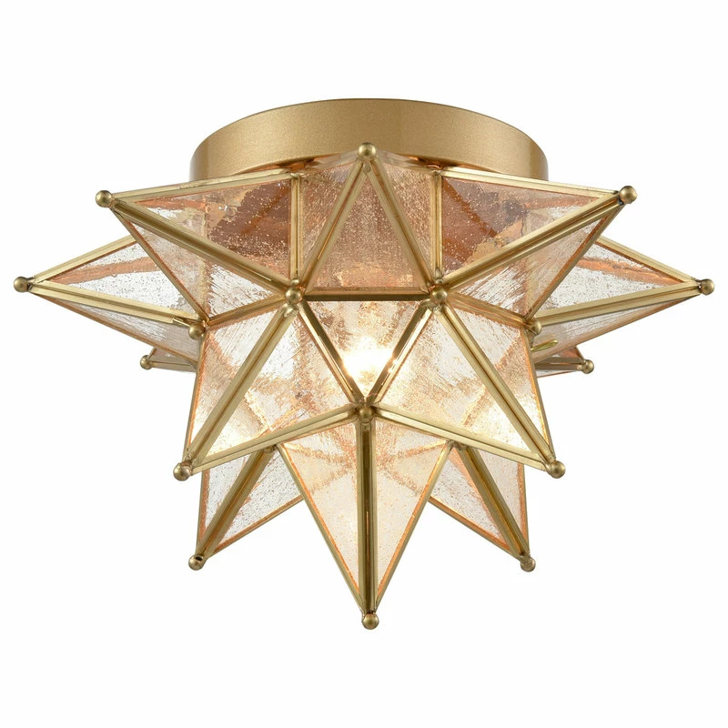 - Solid Made: ETL listed, seeded glass panels hand crafted into the Moravian star shape, sealed with solid brass, showing the true tone of brass
