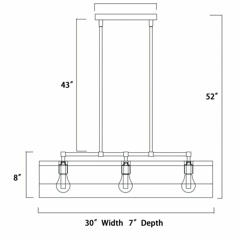 - Fixture Dimensions: 30 in. W x 7 in. D x 8 in. H