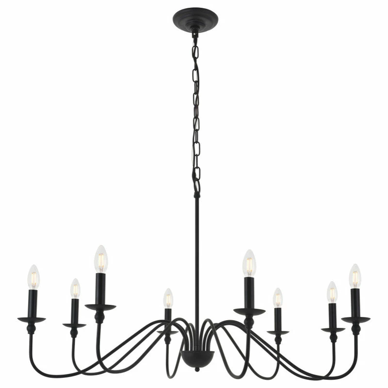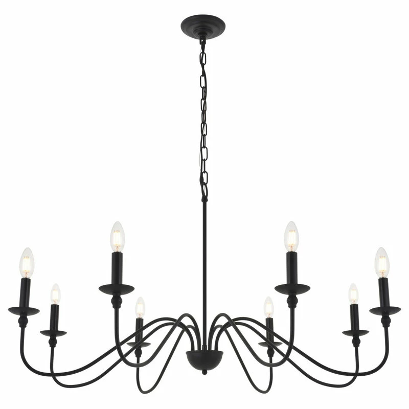 The modest luxury of this matte black finish pendant is seen in its refined style. The 8 undulating arms extend to support illuminating lights. Unadorned, yet dressed in beautiful light, this pendant will grandly illuminate your home, whether it’s in the entry way or living room.