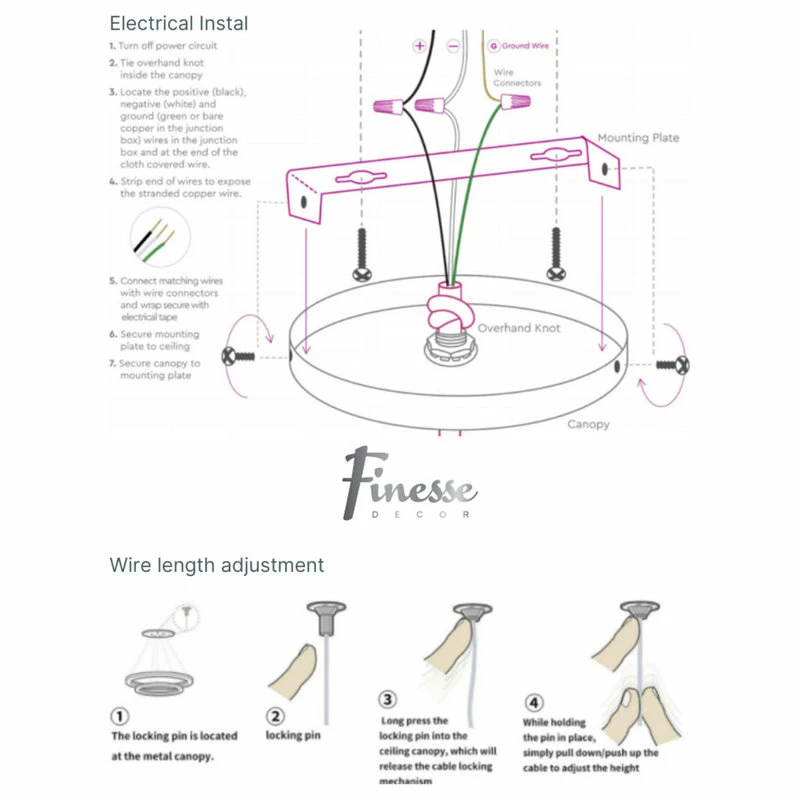 - HANGING LENGTH (WIRE INFO): 1′-12′