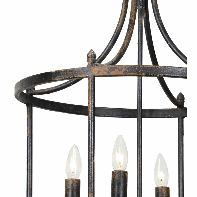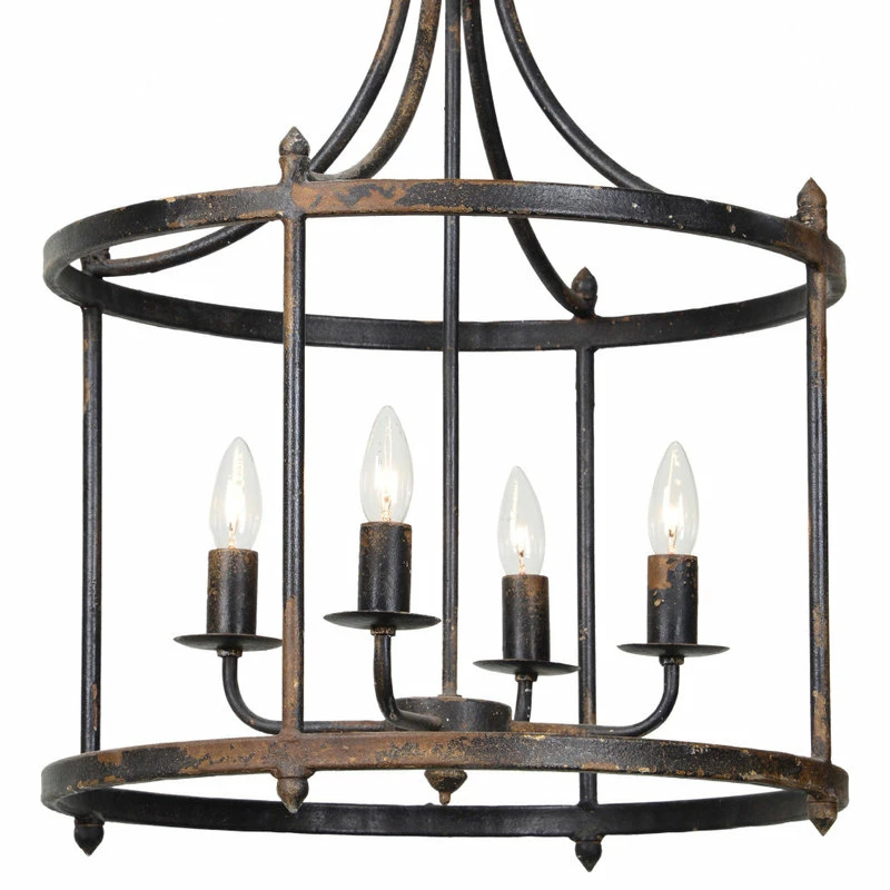 This four light pendant in a cage lantern style has a timeless and appealing look. The aged soft black finish completes the look and adds to this fixtures eye-catching appeal.