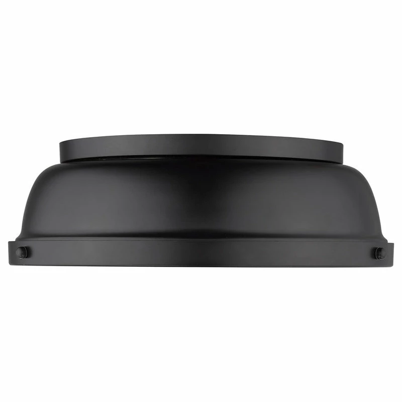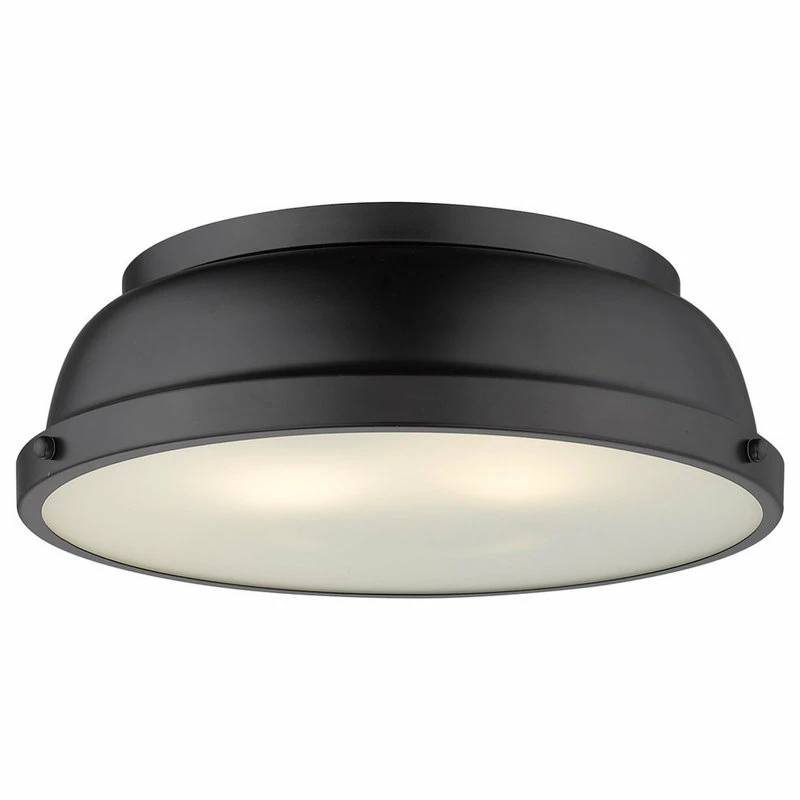 Transform the look of your room with this classic, vintage-inspired fixture by Golden Lighting. Golden Lighting’s Duncan collection is contemporary style with an industrial feel. The collection features a variety of simple, traditional silhouettes that are a nod to a bygone era. A variety of plated and painted metal shade finishes are offered in combination with durable Aged Brass, Black, Chrome or Pewter fixture bodies. The Rubbed Bronze fixtures are paired with Rubbed Bronze shades. This flush mount is perfect for modern or contemporary style home decors. It works perfectly in a kitchen, hallway or bath and is UL approved for damp locations. This matte black flush mount is paired with a matte black shade. The shade is a soft, matte black .