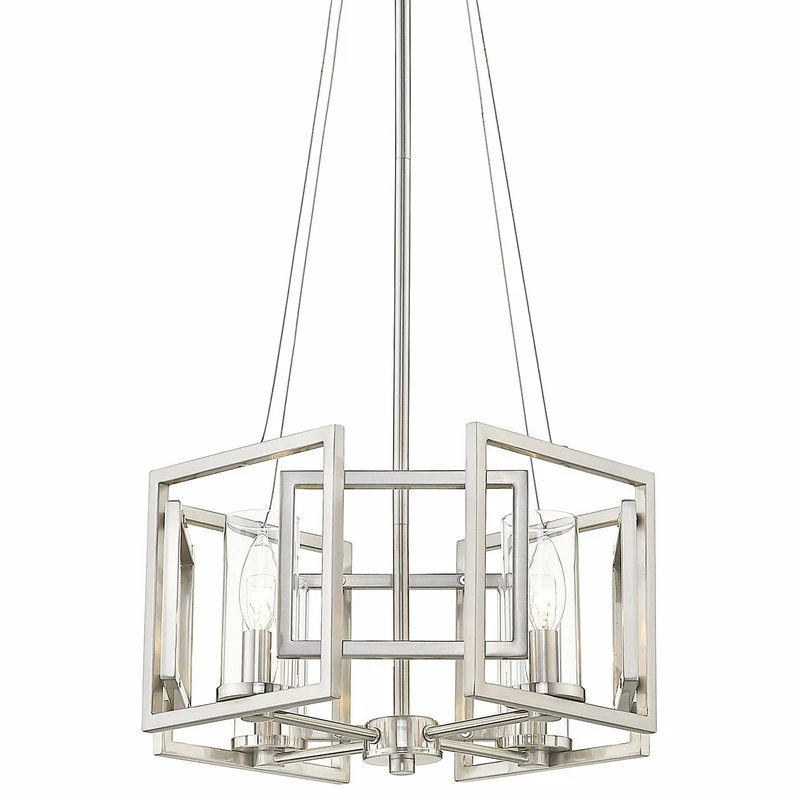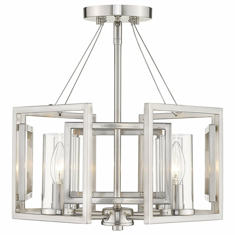 Sleek angles, pure geometry, and industrial finishes synergize to make an ultra-modern statement in Golden Lighting’s Marco collection. A soft Pewter finish heightens the light airy look of the collection, while Clear Glass cylinders surround the stately silhouettes of candelabra bulbs. The Marco semi-flush provides ample light with contemporary flare.