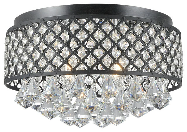 Aletta 4 Light Flush Mount Ceiling Light combines glass crystal and antique bronze finish to create an elegant and contemporary look. The light uses four 60W clear candelabra bulbs to give sophisticated downlight illumination. Suggested space fit: Dining room; Living room; Bedroom; Kitchen; Entry/Foyer. Fixture dimensions: 8.7″ H x 15″ W x 15″ D. Overall Product Weight: 8.4 lbs. Bulbs not included.