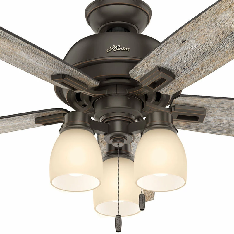 The Donegan boasts a sophisticated design with casual appeal. As part of the Hunter Designer Series, this fan showcases high-end finishes and rustic features making it a perfect accent in any room with farmhouse home decor style. The powerful motor and 52-inch blades will keep the air moving in your bedroom and living room, and the high-efficiency, dimmable LED bulbs in the three-light fixture are fully adjustable for the perfect amount of light. The Donegan collection has a large variety of finishes, sizes, lighting options and more so you can carry a consistent design theme throughout every room in your home.
