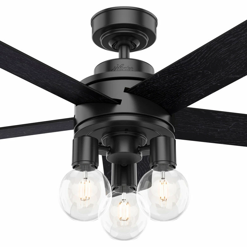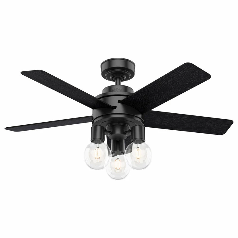 The Hardwick ceiling fan with light is an elevated take on the classic ceiling fan design. Its modern form with clean lines and the updated, traditional light fixture with round Edison LED bulbs provides a unique look in indoor spaces. The Matte Black finish complements dark hardware and accents in modern industrial and farmhouse spaces, while the Matte Nickel and Fresh White finishes add a subtle statement in casual rooms. It’s 44-inch blade span makes it an ideal fit in small rooms like home offices and guest bedrooms.