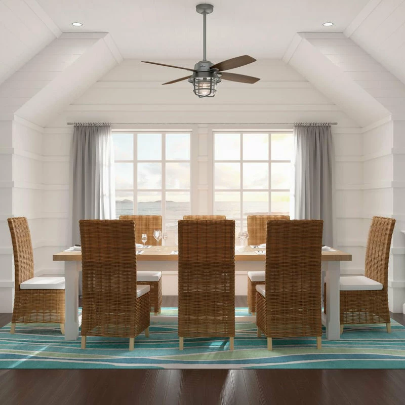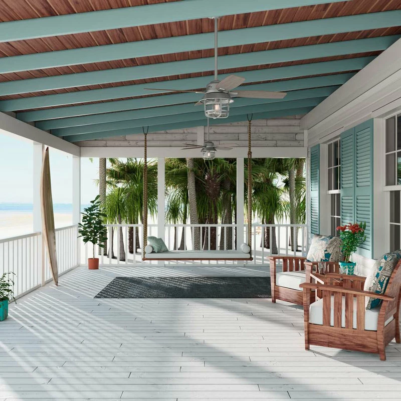 - Damp rated for use as an indoor or outdoor ceiling fan in spaces exposed to moisture and humidity such as porches, patios, sunrooms, and bathrooms