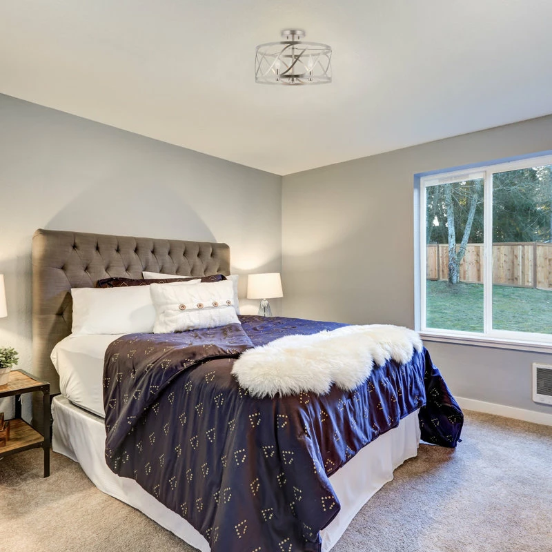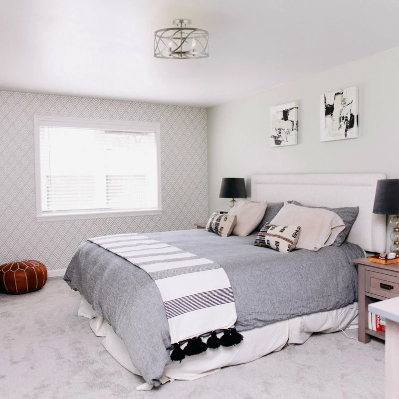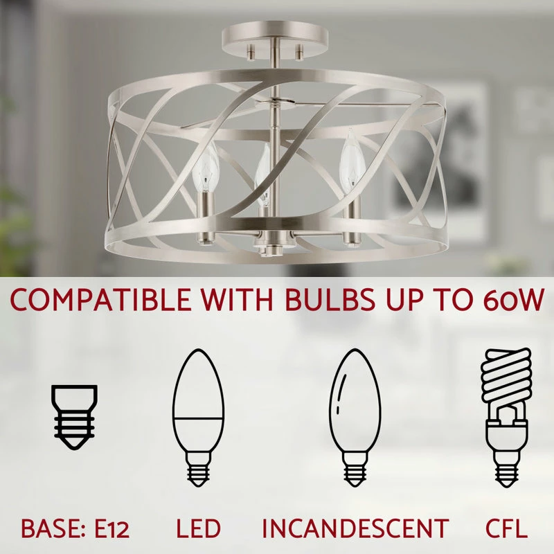 SLEEK MODERN STYLE: Beautiful semi-flush ceiling light features a unique style metal drum shade in a stunning brushed nickel finish. Allow this elegant open design to shine brightly, illuminating & elevating your home