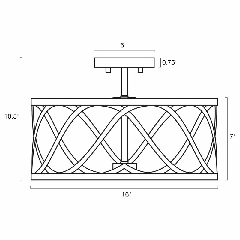 - DIMENSIONS: Ceiling Light: 10.5″ (H) x 16″ (D), Canopy: 5″ (D) x 0.75″ (H), Metal Drum Shade: 7″ (H) x 16″ (D)