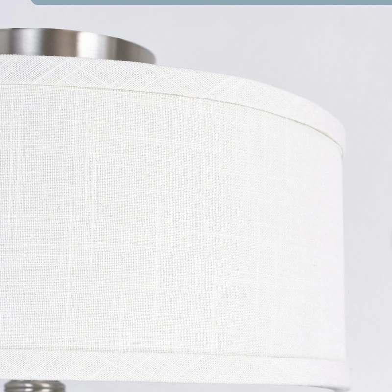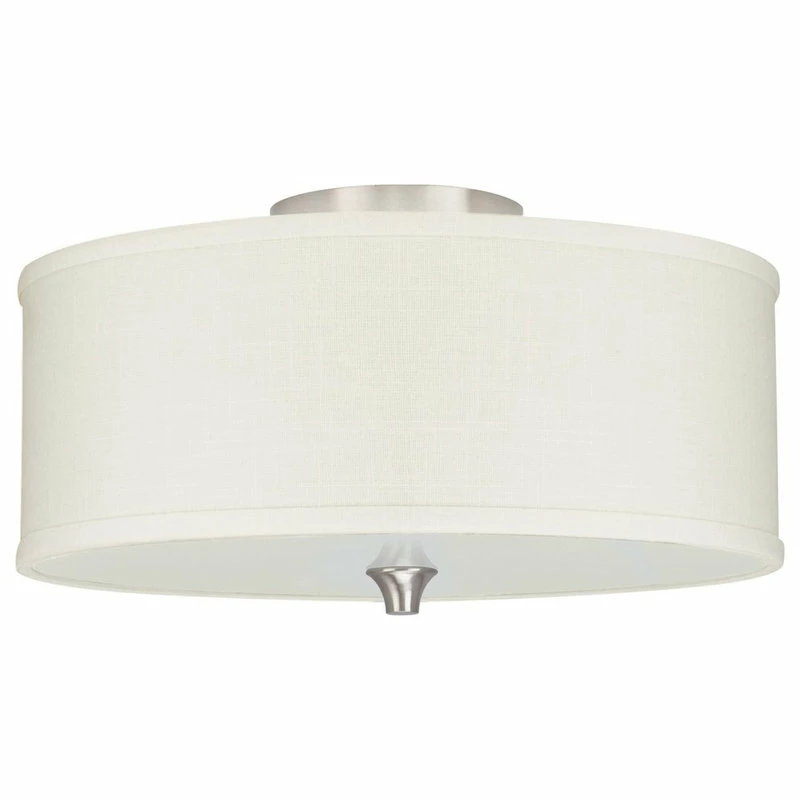 MODERN STYLE: 2-light semi-flush mount features an off white, linen drum shade, frosted glass diffuser and brushed nickel finish. Classic in design, illuminate your home with this bright & timeless ceiling light sure to fit many interior styles and decor