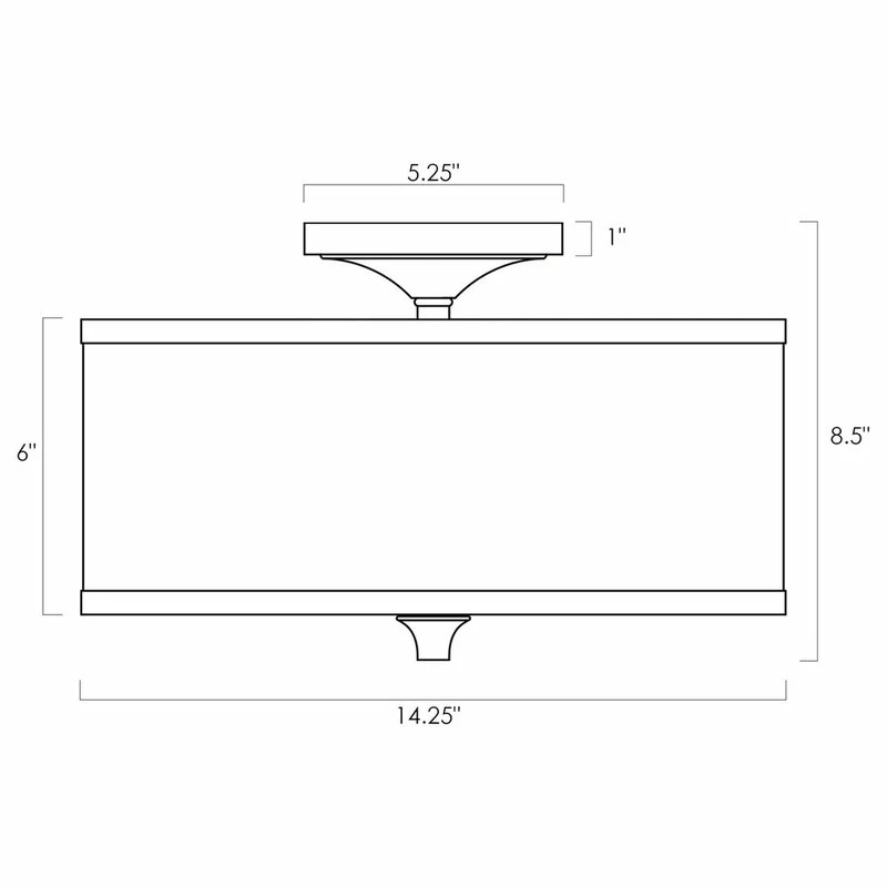 - DIMENSIONS: Ceiling Light: 8.5″ (H) x 14.25″ (D), Shade: 6″ (H) x 14.25″ (D), Canopy: 1″ (H) x 5.25″ (D). Dimmer compatible