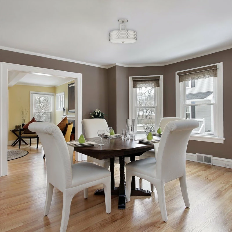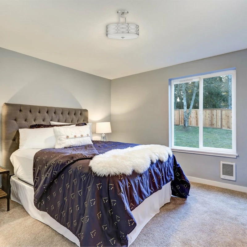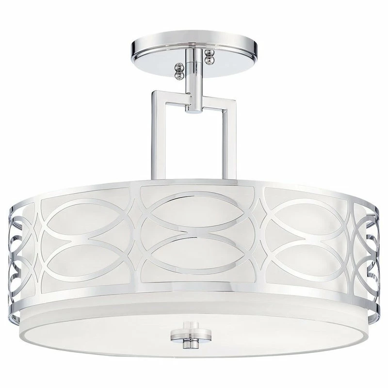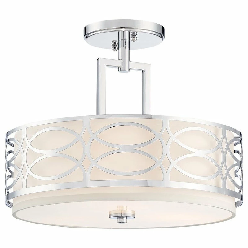 TRANSITIONAL STYLE: Semi-flush mount features a removable metal drum shade, glass diffuser, and a chrome finish. The unique, intricate lattice design surrounding the sleek fabric shade provides a stylish, modern feel to elevate your home and decor
