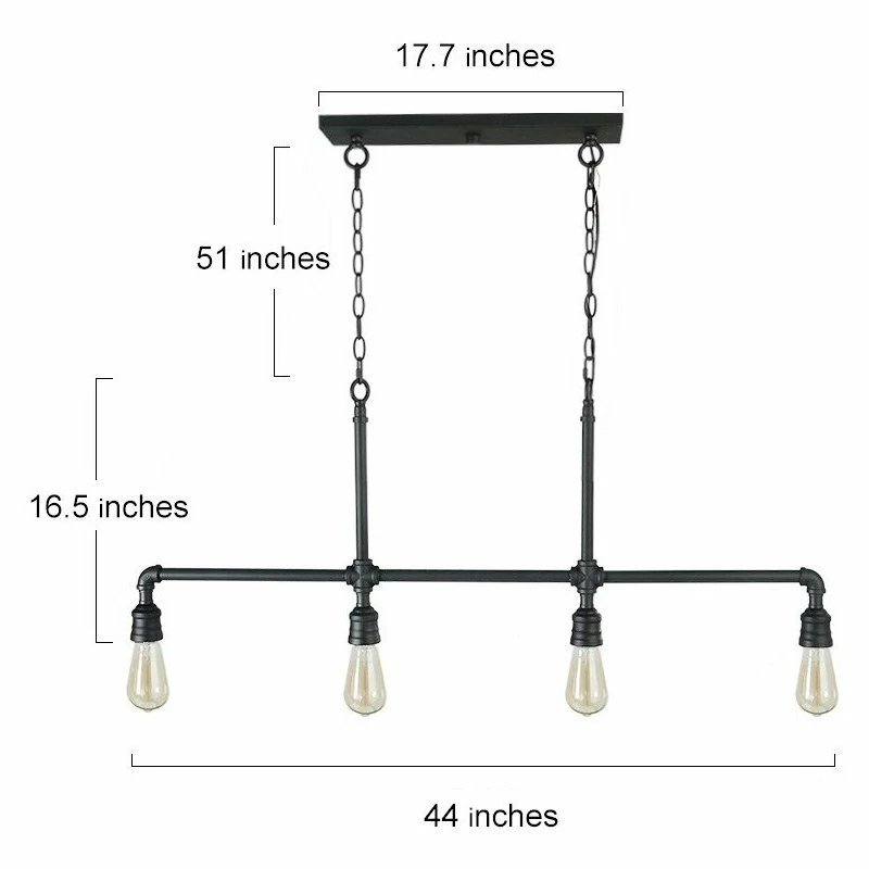 Combine it with any industrial inspired bulb to create a lovely and unique look in matte black finish. It features a black metal water pipe and accents, exposed bulbs(Not included), two adjustable chains and industrial style for use in your space. The chandelier lighting has an adjustable chain that is included for maximum flexibility in placement to hanging in sloped ceiling conveniently. Includes all mounting hardware for quick and easy installation. Requires four E26/medium based 60W bulbs (sold separately).