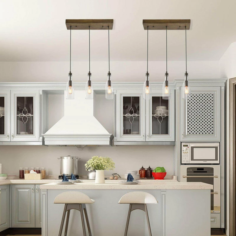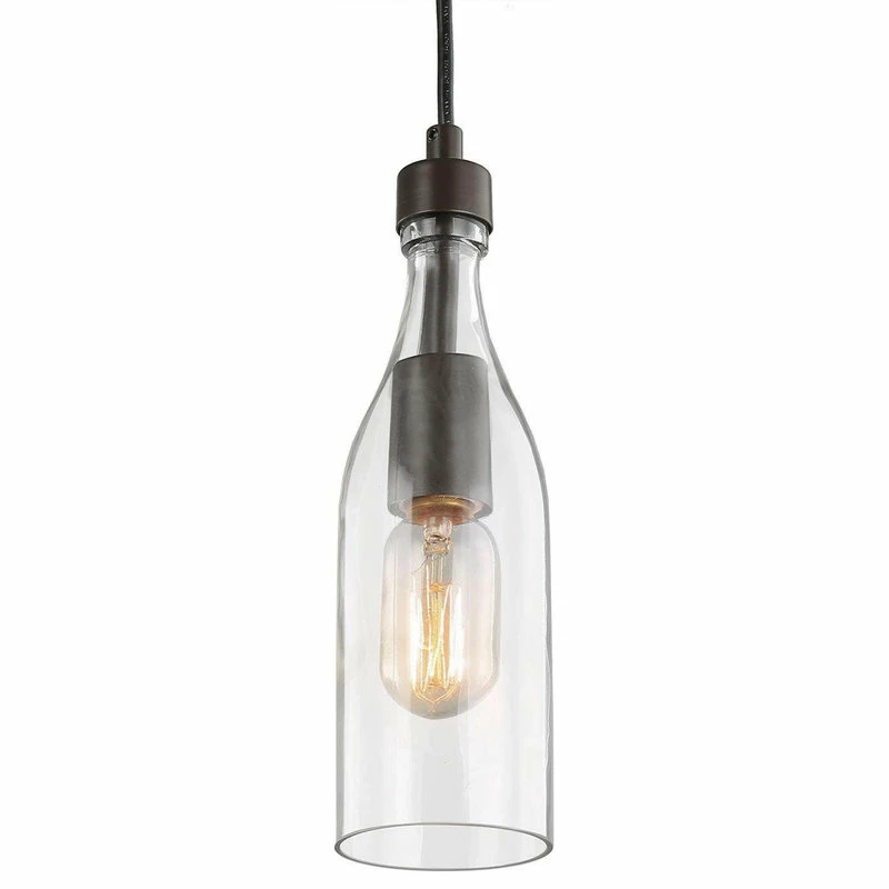 Clearly this versatile glass lamp and matching pendant can swing in a modern or traditional scenario. Add an antique and unique touch to your home decor by acquiring this wonderful glass bottle pendant light which will amend the appearance of your living place. 5 clear bottle pendants will not only brighten up your living place but also illuminate it in an interesting way with different interior decoration.