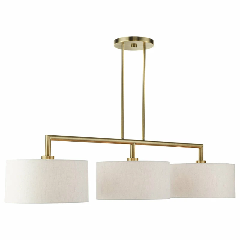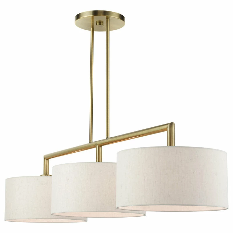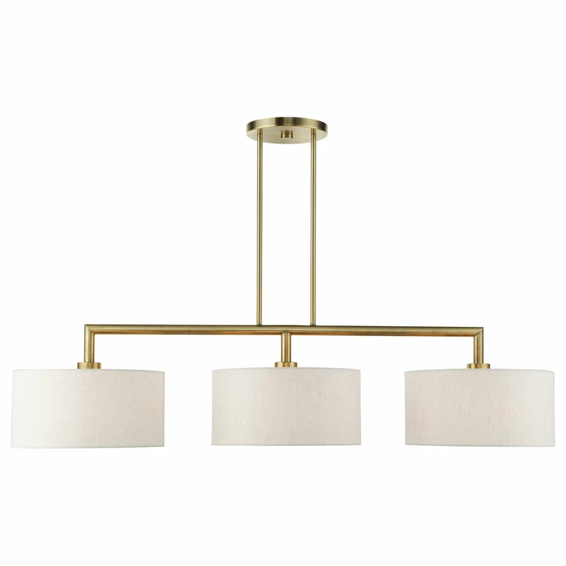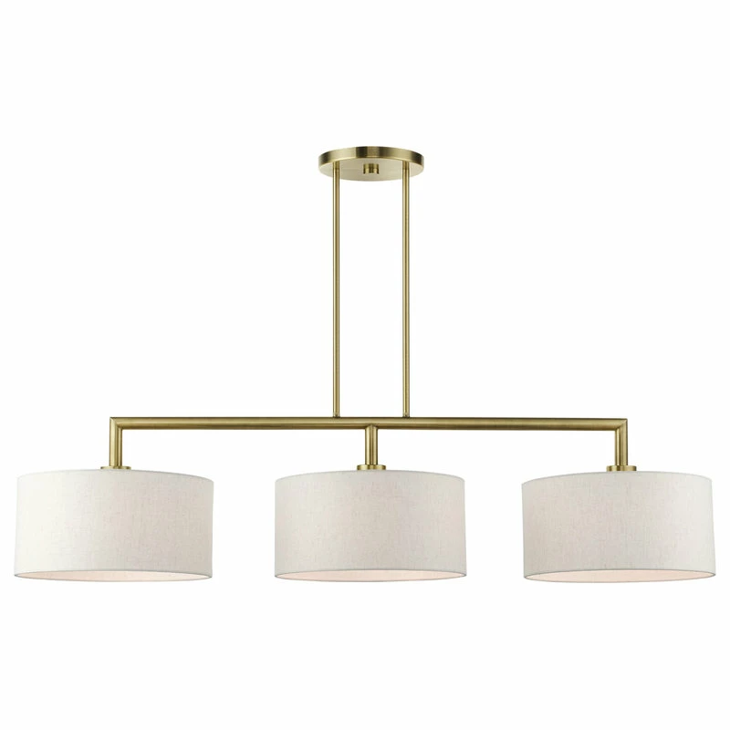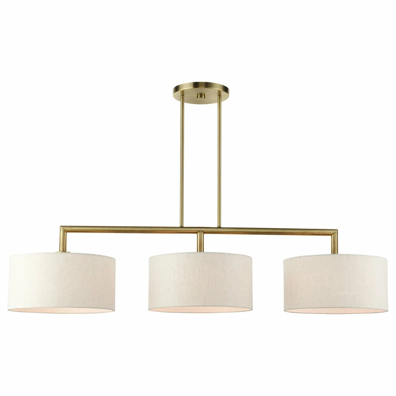 This 3 light Linear Chandelier from the Meridian collection by Livex will enhance your home with a perfect mix of form and function. The features include a Antique Brass finish applied by experts.