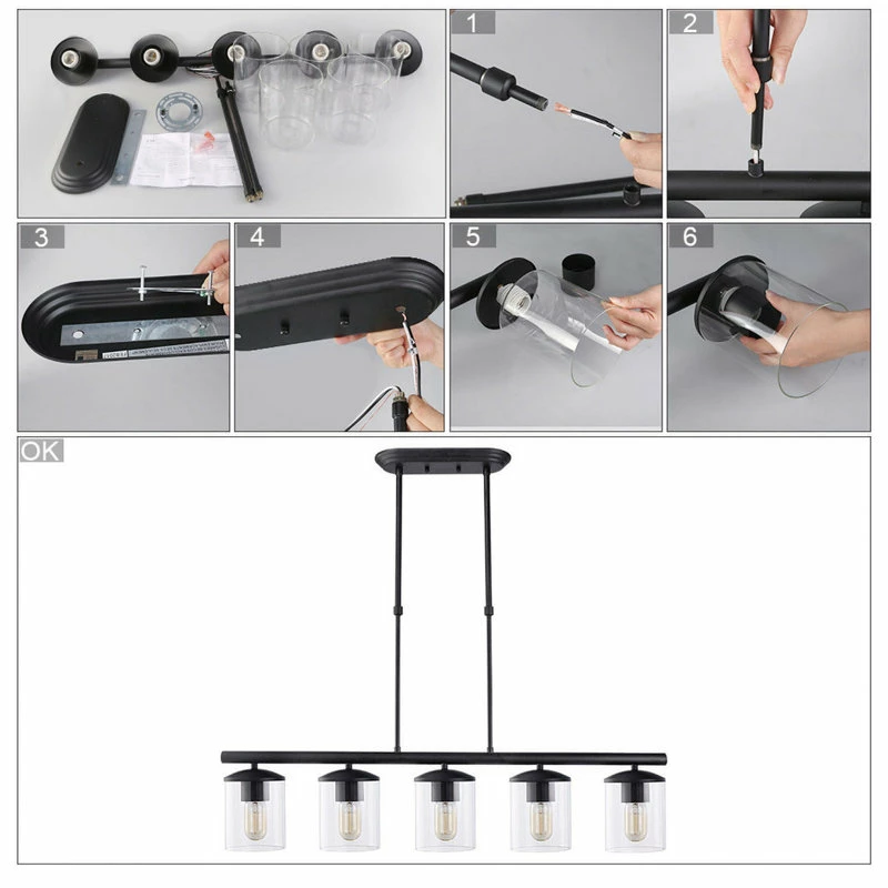 Also this 5-light industrial pendant light is a modern industrial design with elegant black linear and delicate sense. It is perfect for your kitchen Island and Dining Room, add more sense of your interior atmosphere.