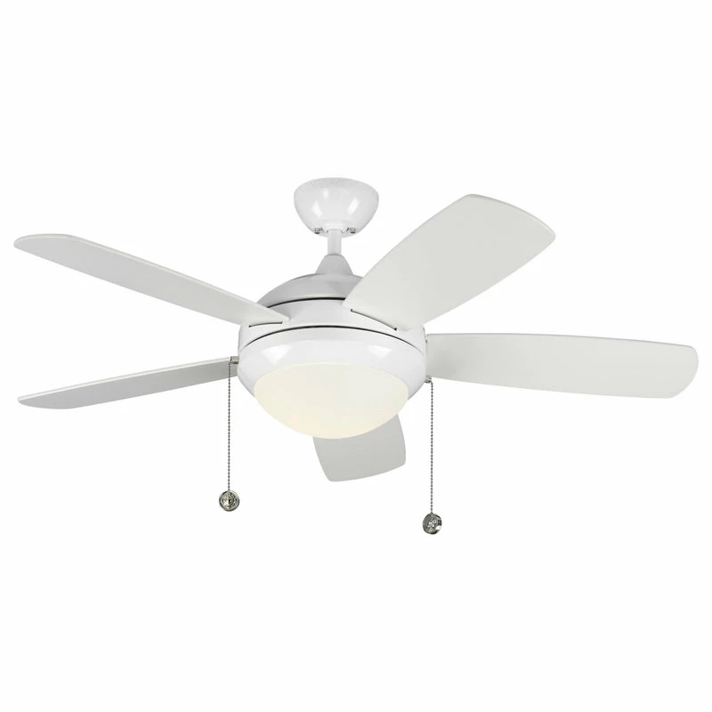 With a minimalist, contemporary design and six color/finish options, the Discus Classic II 44″ ceiling fan by Monte Carlo complements a wide variety of room styles. Discus Classic II features an integrated 20W LED downlight with a matte opal glass shade for functionality with flair. A pull chain controls this 3-speed fan, however a handheld or wall mount remote control is compatible and sold separately.