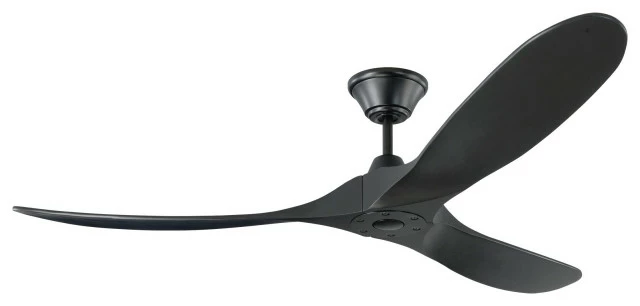 With a sleek modern silhouette, a DC motor and super energy-efficiency, the 60″ Maverick ceiling fan from Monte Carlo features softly rounded blades and elegantly simple housing. Maverick has a 60-inch blade sweep and a 3-blade design that delivers a distinct profile and incredible airflow for living rooms, great rooms or outdoor covered areas. It includes a hand-held remote with six speeds and reverse, and is available in five distinct finish options: Brushed Steel housing with Dark Walnut blades, Brushed Steel housing with Koa blades, Matte Black housing with Dark Walnut Blades, Aged Pewter housing with Light Grey Weathered Oak blades and Black housing with Black blades. All versions feature beautiful hand-carved, balsa wood blades. ENERGY STAR qualified. Maverick fans are damp-rated, and may be used indoors and in covered outdoor spaces.