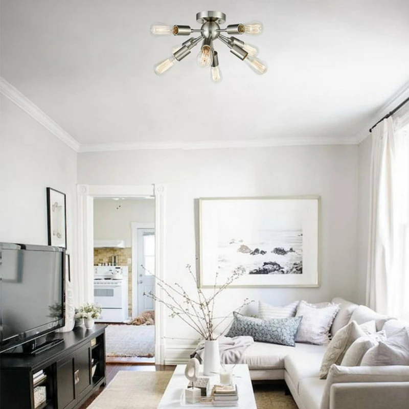 Flaunting an antique brass, brushed nickel and oil-rubbed bronze finishes, the flush mount ceiling light livens up your space with a touch of glitz. Its stunning starburst design, providing depth, dimension and a familiar aura to your space that canβt be resisted. Crafted of solid metal, it is durable and rustproof.