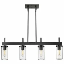 Best Sale π Golden Lighting Winslett Linear Pendant, Matte Black With Ribbed Clear Glass π