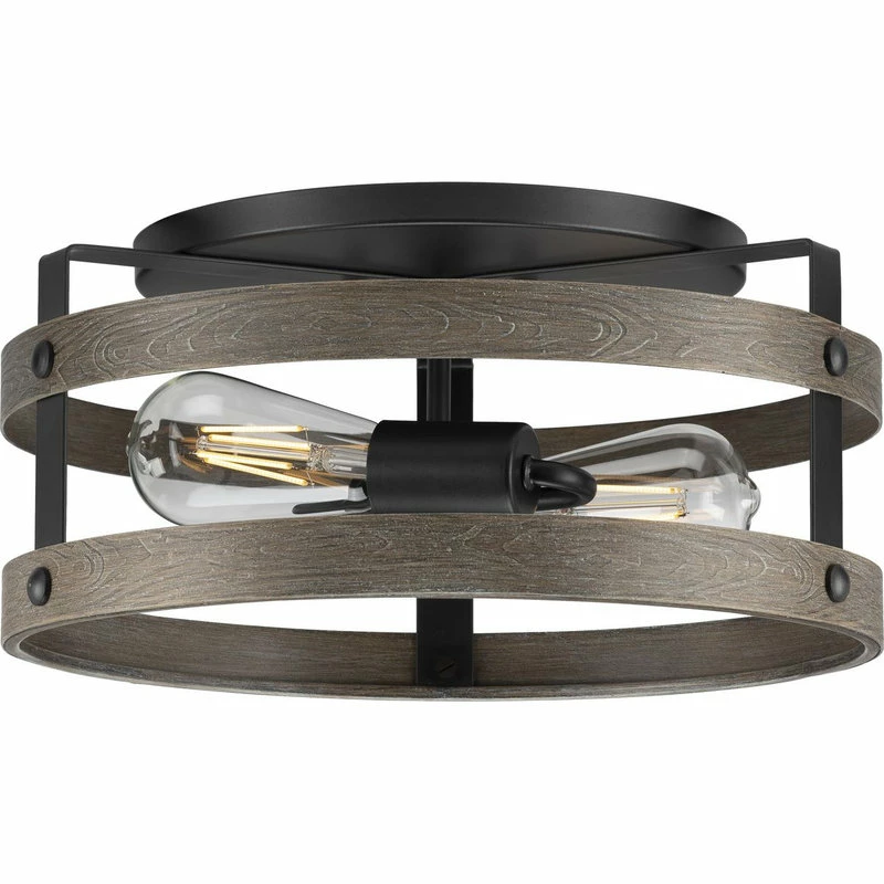 Cultivate an up-to-date country charm with the Gulliver Collection 2-Light Weathered Gray Farmhouse Flush Mount Ceiling Light. Light sources exude a comforting country glow as they peek through the circular bands of the open-cage design. The circular bands are constructed from a faux-wood coated in a weathered gray finish accented by graphite ceiling plate and metal details for perfect modern rustic character. For ideal illumination, use 2 medium base bulbs that are sold separately (60w max – LED/CFL/incandescent). The ceiling light is compatible with dimmable bulbs. Incorporate clear light bulbs for a pinch of contemporary shine or opt for vintage bulbs to enhance the light fixture’s rustic demeanor. The flush mount’s rustic design is ideal for any hallway, stairwell, entryway, closet, pantry, kitchen, or sitting room in coastal and farmhouse style settings. It’s time to breathe new life into the mundane every day with timeless and truly transformative lighting. Make your purchase today to begin your journey to a whole new lighting experience. Progress Lighting products are designed for exceptional quality, reliability, and functionality.