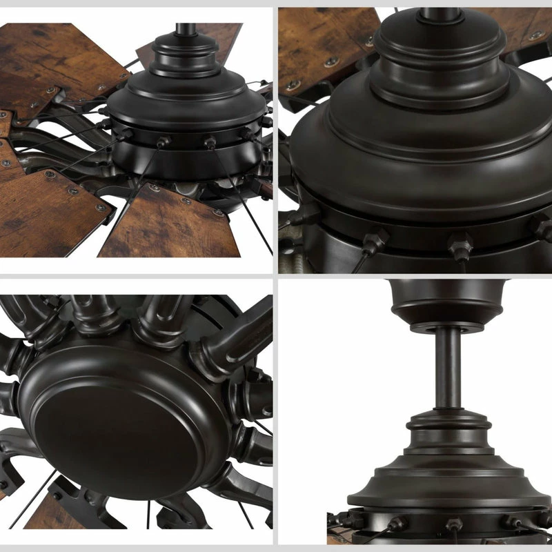 Springer is a statement-making ceiling fan with a rustic flair and a rich Architectural Bronze finish and Distressed Walnut blades. The 12-blade, 60 in ceiling fan was inspired by the form and function of a windmill and is ideal for Farmhouse, Industrial and Transitional interior settings. A full function remote control with batteries is included along with a dual mount canopy that accommodates flat or sloped ceilings.