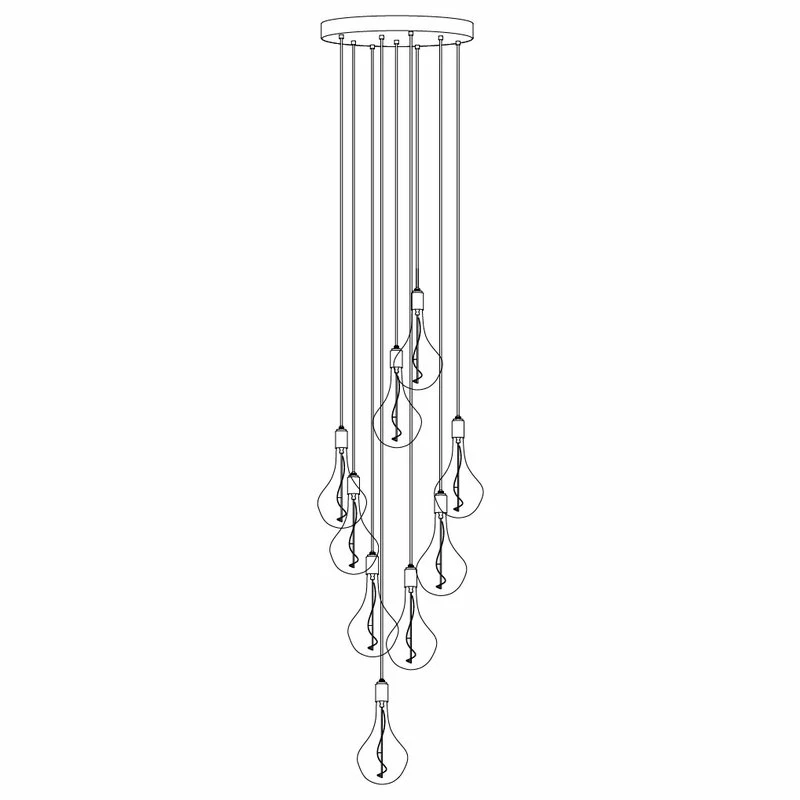 The Graphite Nine Pendant by Tala is an impressive lighting system designed for maximum impact. Encased in a large black circular canopy, a broad Black Ash disc and nine Graphite grips form a practical yet attractive base to hang nine Graphite pendants at varying lengths, creating a spectacular lighting display.