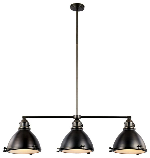 The Performance 13″ Island Pendant is 46″ long and provides abundant light to your home’s interior while adding style and interest. Transform your living spaces with this Nautical fixture that enhances a variety of interior design themes. The Performance Collection is perfect for the dining room, kitchen Island, restaurants and many other applications. This 3-light fixture offers an adjustable hanging height, and features domed metal shades. The Frosted Glass lens softens shadows, basking your space in a soft glow.