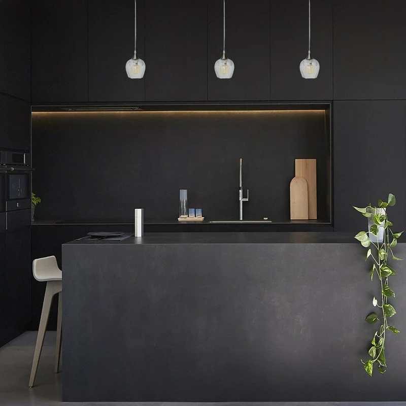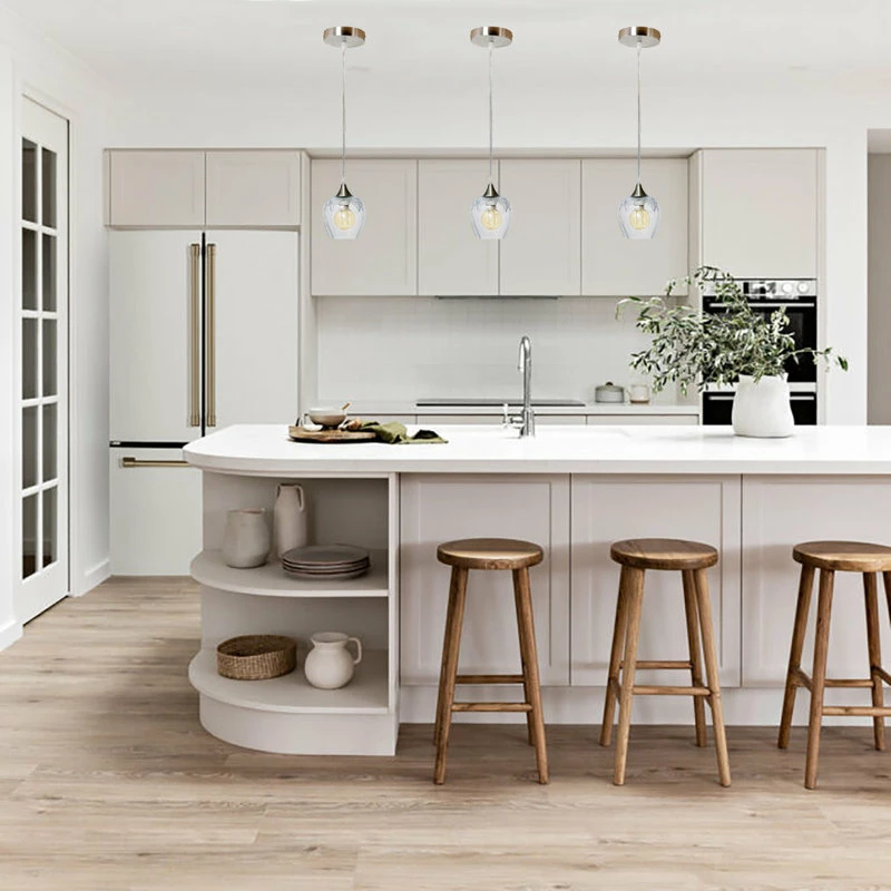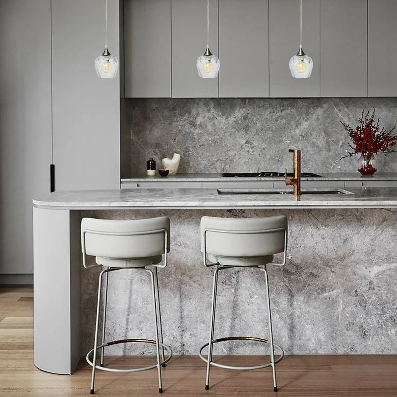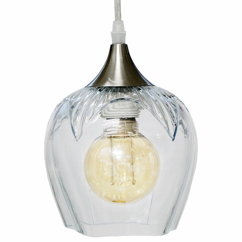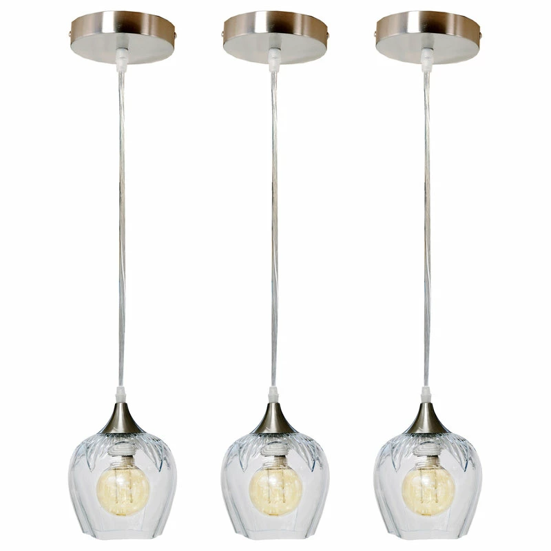 Apple/Leaf Hand Blown Glass Pendant Lights – pack of 3, Clear Glass. 72 inch long, Adjustable hard wire cord. Great for room with 8 ft./9 ft. ceiling height. UL Listed. Bulb not included. Easy-to-install. Caution: please read before purchase: each product is individually mouth-blown and hand finished by skilled craftsmen. Each product is therefore unique in its shape and coloring. Minor color and shape variations are possible. Breakage-proof package: we guarantee free replacement for any damaged product. Ideal to hang with Incandescent (40-Watt maximum) /LED (up to 150-Watt equivalent) bulb above kitchen island, table, entryway, hallway, bedroom, dining room, can be used in high and sloped ceiling.
