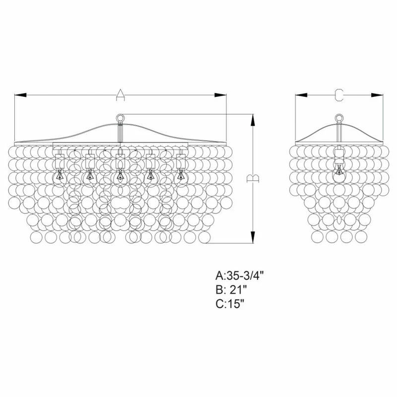 Soft contemporary styling combined with texture and iridescence. The Elsa collection 5 light oval island pendant light is a unique option to lighten and liven up the space above an elongated dining table or kitchen island. Tiers of hand-strung natural capiz shells create a soft diffused light that perfectly compliments the satin nickel metal elements. This is a full collection with coordinating pieces to decorate any room in the house.